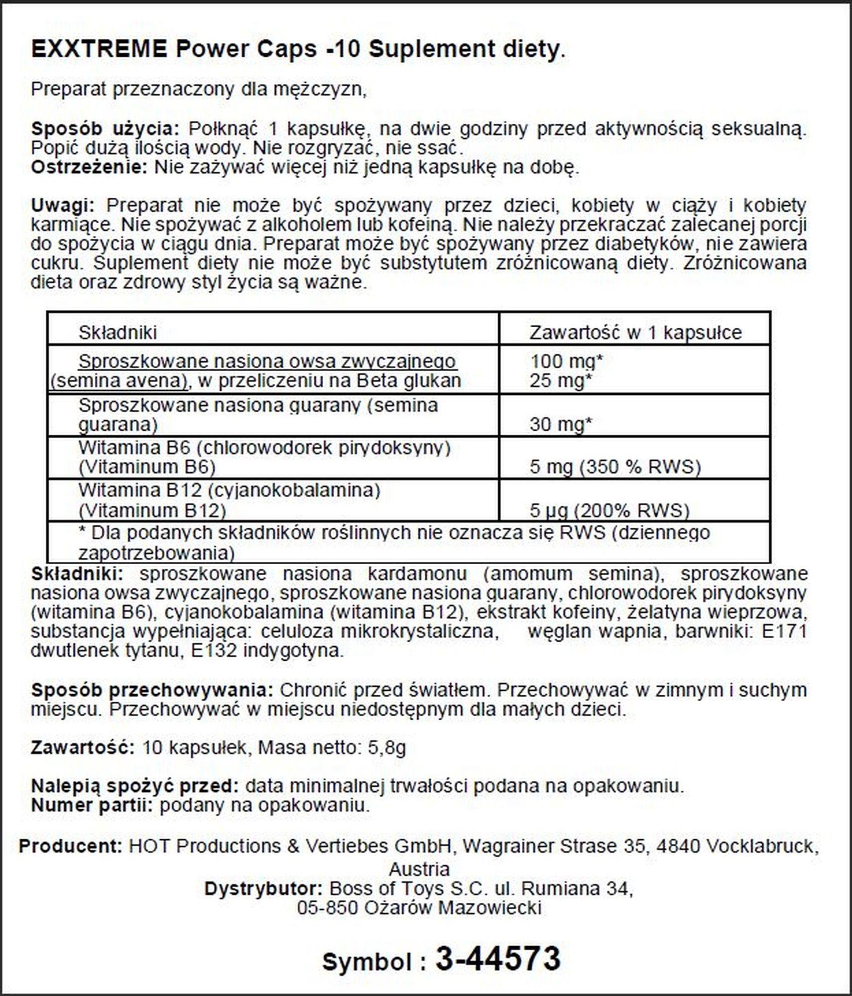Supl.diety-eXXtreme power caps 1×10 stk.
