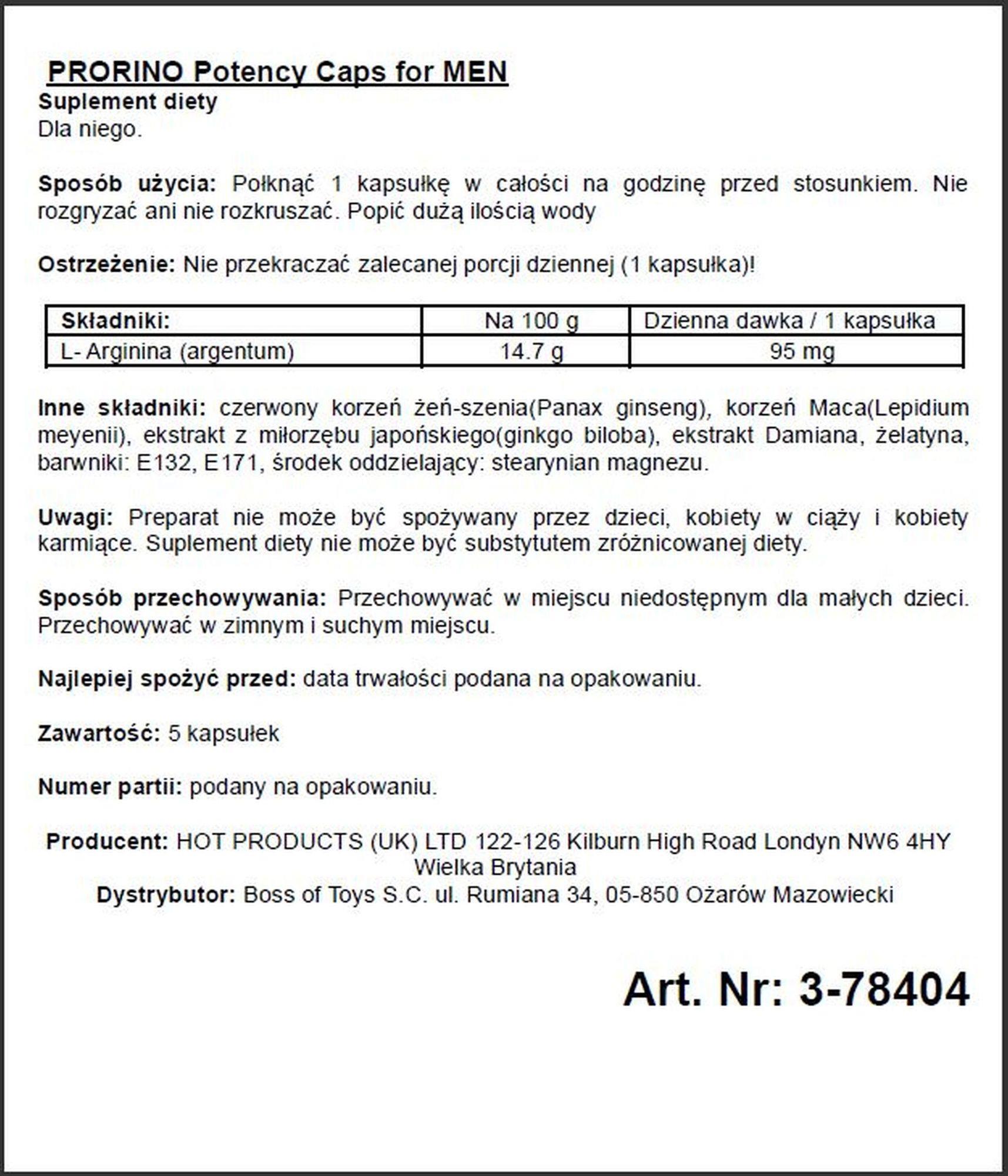 Supl.diety-PRORINO Men- 5pcs black line Potency Caps