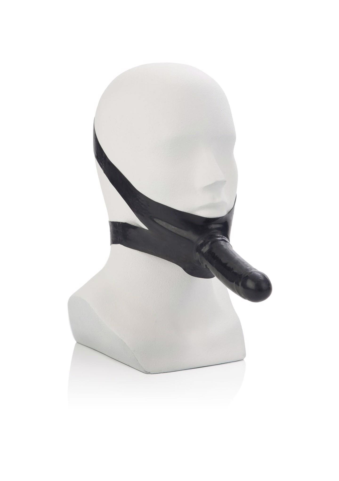 Spełnij swoje fetysze! Knebel z przymocowanym latexowym dildem. Świetny dla odważnych par lubiących eksperymentować.
