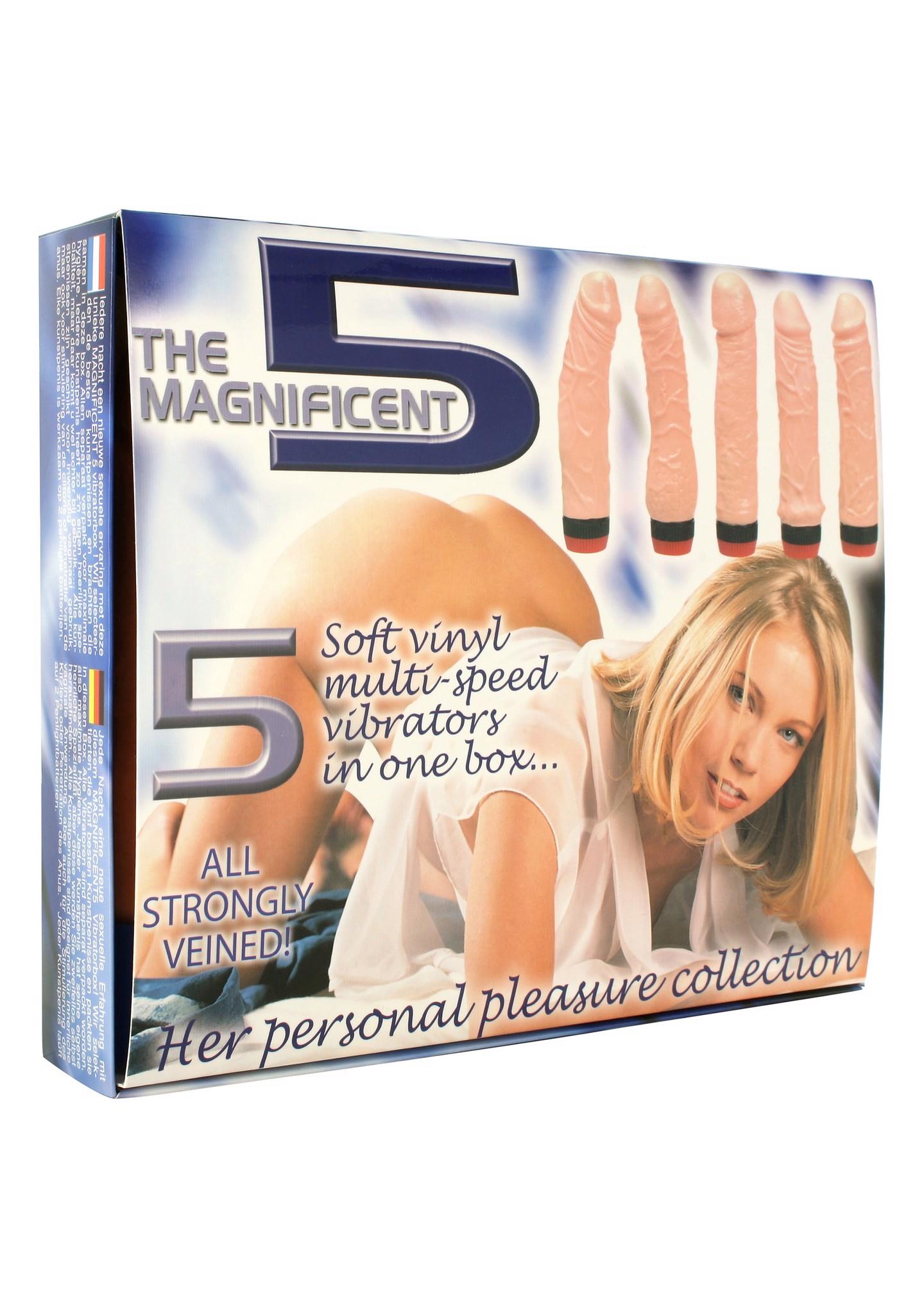 Doskonały zestaw przeznaczony dla pań lubiących urozmaicać swoje życie erotyczne. Zawiera on pięć wibratorów o różnych kształtach penisa. Wszystkie produkty wykonane zostały z elastycznego i miłego w dotyku vinylu, który nie powoduje podrażnień skóry. Produkt dostępny w kolorze naturalnym.