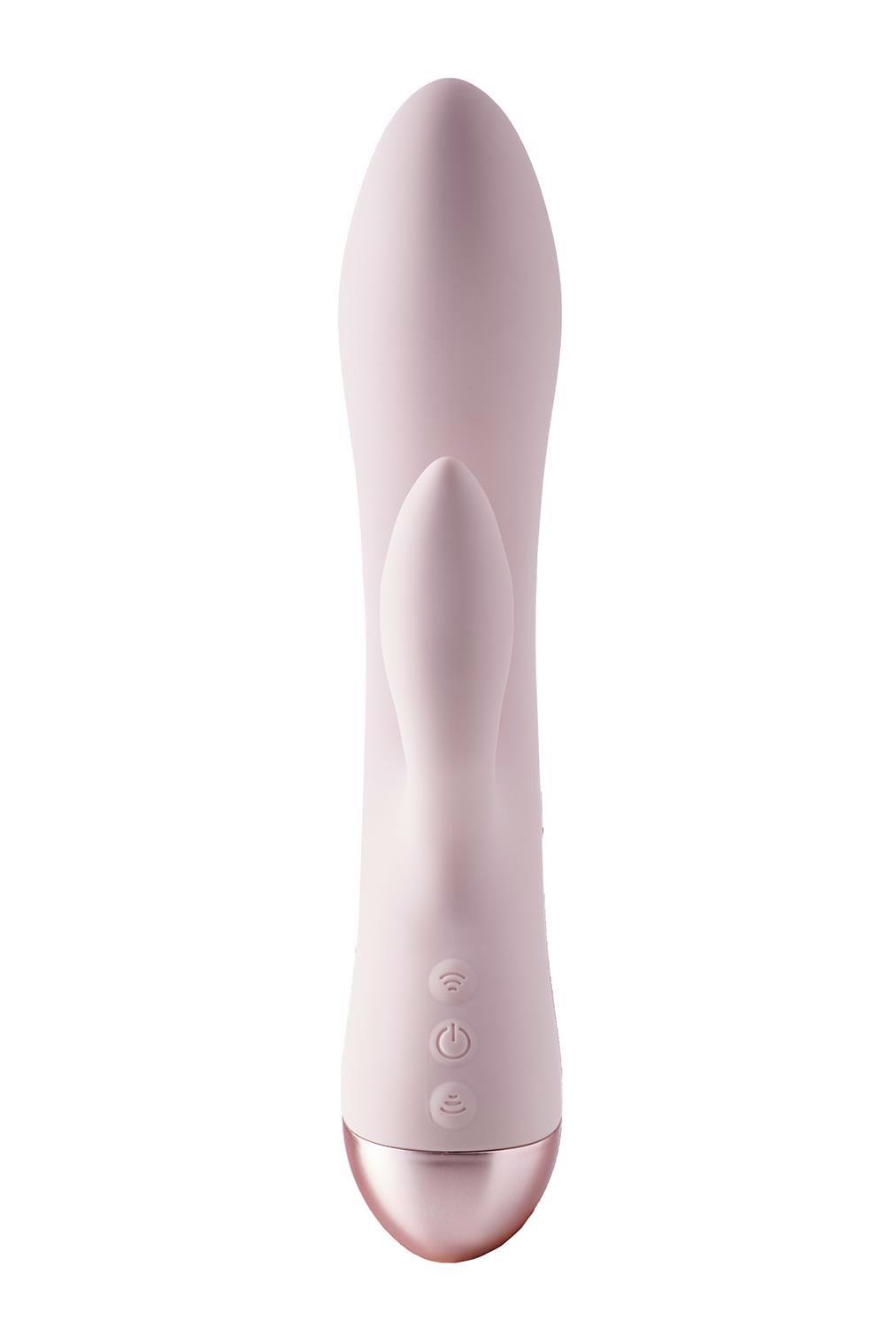 Coco is a duo vibrator made of soft solid silicone and ABS with a slightly flexible, curved body and a flexible clitoral stimulator. The duo vibe is body safe, free of latex and free of phthalates. It features 2 motors, offering strong and deep vibrations, with 3 speeds and 7 rhythms, so everyone’s favourite stimulation setting is available. Operation is easy with 3 buttons. The shaft and the clitoris stimulator have their own motor and their own button to customize the experience. Gigi can be used in bath or shower as it’s completely waterproof. A USB-pin cable is included for recharging. Duo vibrator7 Vibration rhythms and 3 speedsMade of silicone and ABS with PU coatingFree of phthalates and latex, body safeWaterproofRechargeable, USB-pin cable includedCharging time 2,5 hoursUse time 1 hourLength 22,9 cmWidth 4,1 cm Coco is a part of the Vivre toy line from Dream Toys. The French word means ‘to live’ and the Vivre range is meant for young women and their partners who appreciate the finer things in life, who like pastel colours instead of loud flashy colours, women and men with a sophisticated lifestyle who prefer quality over quantity. With its soft pink colour and pink metallic accent at the base the Coco duo vibe has a chic and classy appearance. The matching packaging has icons on the side panels showing the functions. On the backside of the box, as usual with Dream Toys products, there’s a product description in 7 languages.Click here to download the manual
