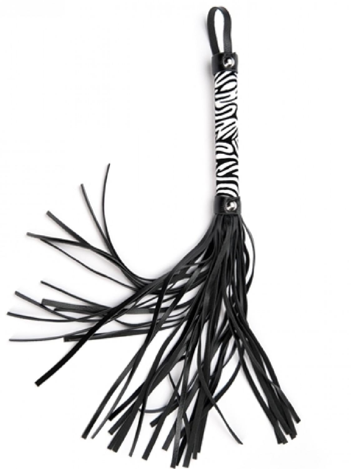 Klasyczny flogger wykonany ze skóry PU, drewna i bezniklowego metalu z twistem w kolorze białej pantery. Rączka jest zaprojektowana dla idealnego chwytu i jest bardzo wytrzymała. Na uchwycie czarny nadruk jest pluszowy w dotyku, podczas gdy biała część jest błyszcząca. Na górze ma skórzany pierścień do przechowywania i wyświetlania celów. Średnica pudełka to 25x8x4 cm.
