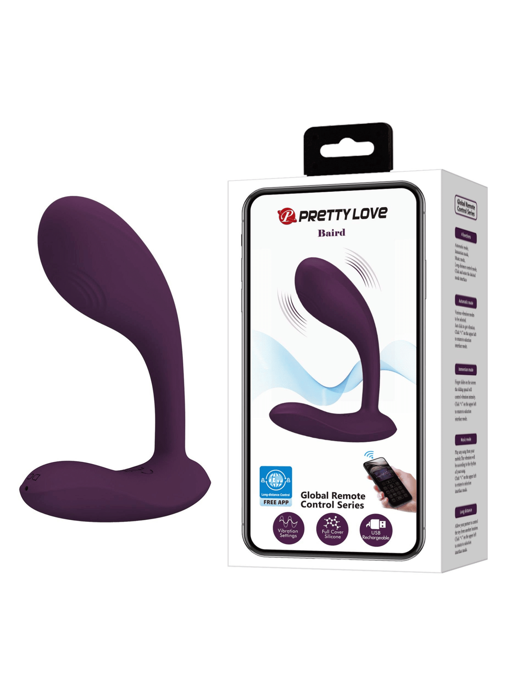 Pretty Love Baird to dyskretny i mocny wibrator do punktu G z obsługą aplikacji mobilnej, zaprojektowany z myślą o komforcie noszenia i intensywnej stymulacji – zawsze i wszędzie. Ergonomicznie zakrzywiona forma oraz aksamitnie miękka powierzchnia zapewniają przyjemne dopasowanie i wygodę podczas użytkowania.