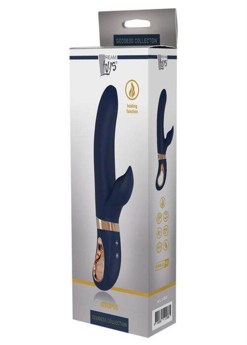 341,00 złIn the same style as the other Goddess Collection toys, Atropos is made of dark blue silicone with gold coloured details. The elegant duo vibrator has a ring shaped handle with metal coating that makes it easy to grip and look luxurious. Made of Liquid Silicone, this duo vibrator has a soft tip and is silky smooth to the touch. Atropos has a curved shaft that is perfect for G-spot stimulation. With its powerful motor this duo vibrator is sure to deliver strong vibrations both in the shaft and the clitoris stimulator and with 7 vibration rhythms and 3 speeds there’s a perfect vibration for every taste. To make things even more pleasant, Atropos has a heating function, so the shaft will feel nice and warm like body temperature. Don’t hesitate to use Atropos in the shower or bath tub, it’s fully waterproof. A magnetic USB-cable for recharging is included. Charging duration 4 hours. Usage duration 90 minutes at the highest speed. Body safe, free of phthalates and latex.Duo vibratorMade of Liquid SiliconeWith metal coated ring gripCurved shaftSoft tipFlexible clitoral stimulatorPowerful motor7 Vibrations rhythms, 3 speedsHeating / warming functionIPX7 WaterproofRechargeableMagnetic USB-cable includedLength 23 cmDiameter 3,5 cmClick here to download the manual