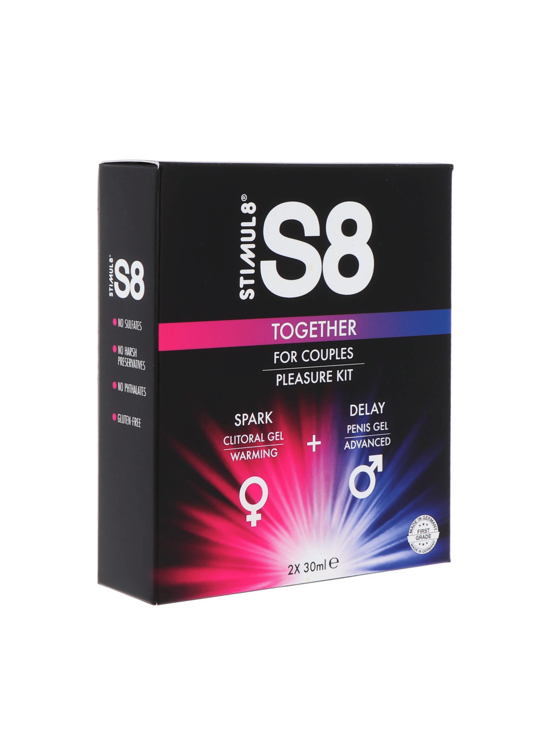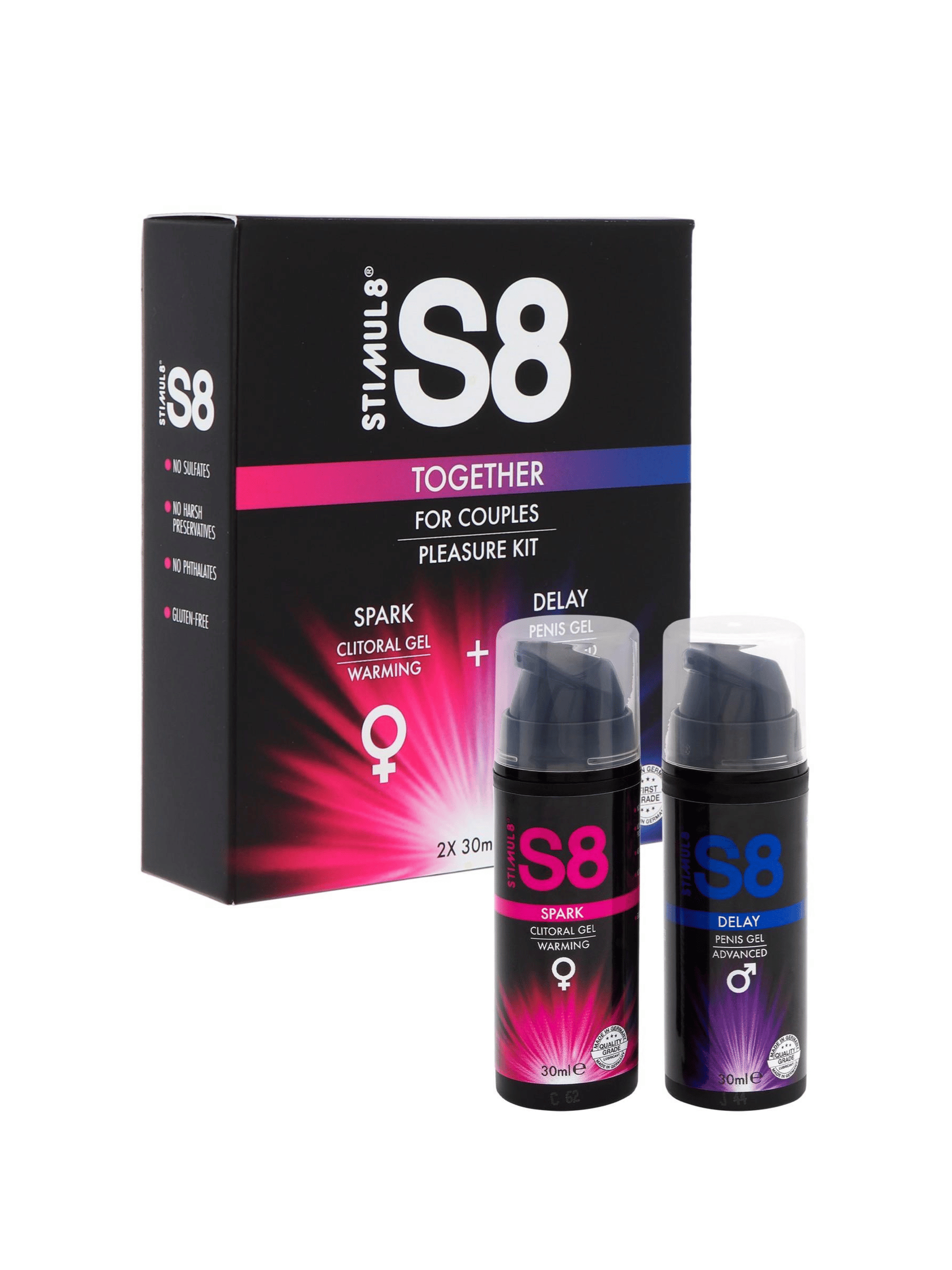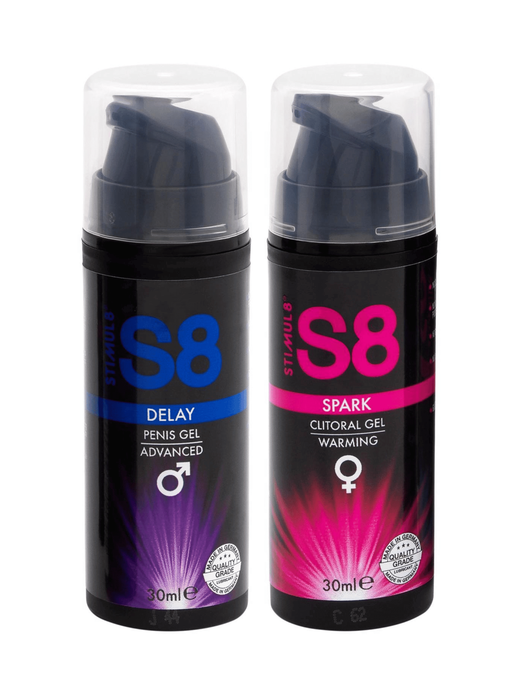 Zestaw zawiera dwa produkty: S8 Spark Clitoral Gel dla niej oraz S8 Delay Gel dla niego. Wspólne stosowanie obu formuł pozwala na zsynchronizowane doświadczenie – Spark oddziałuje na kobiece zmysły i strefy erogenne, natomiast Delay wspiera dłuższe i bardziej kontrolowane doznania u partnera.