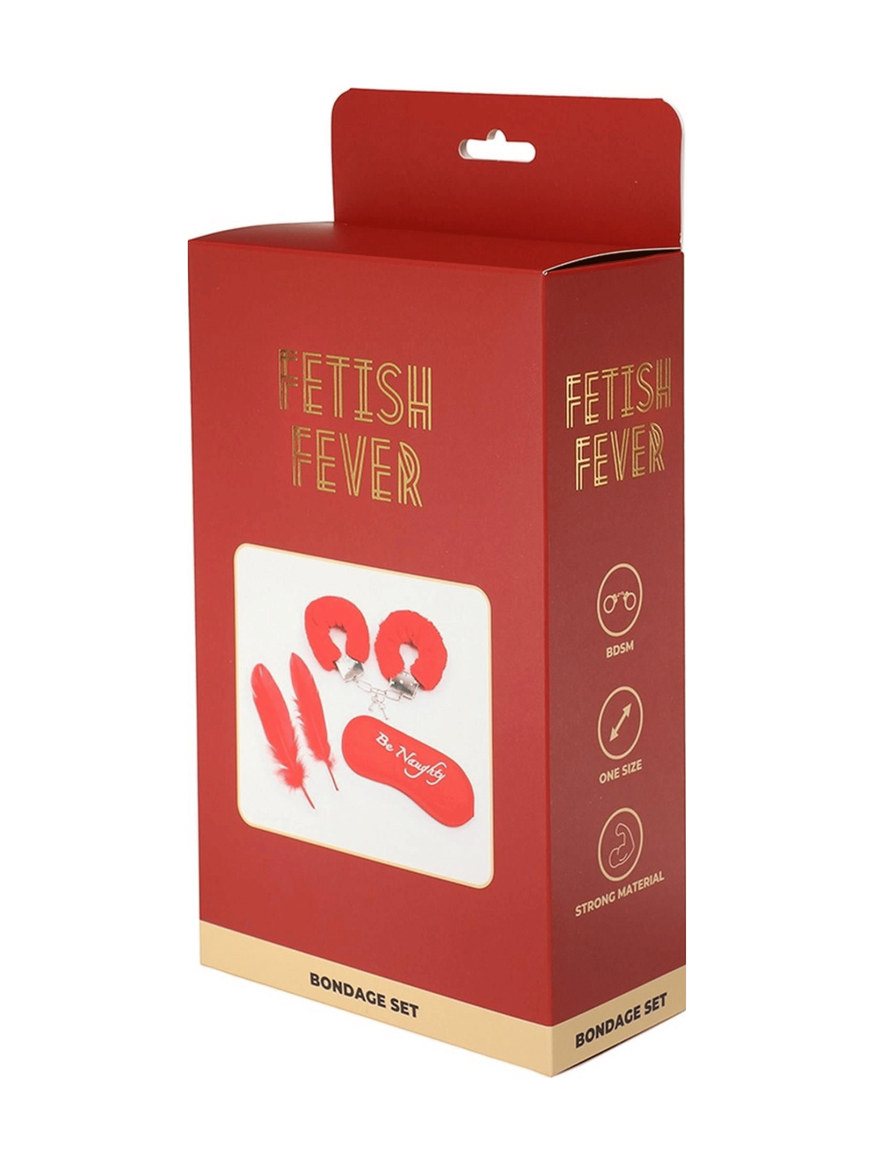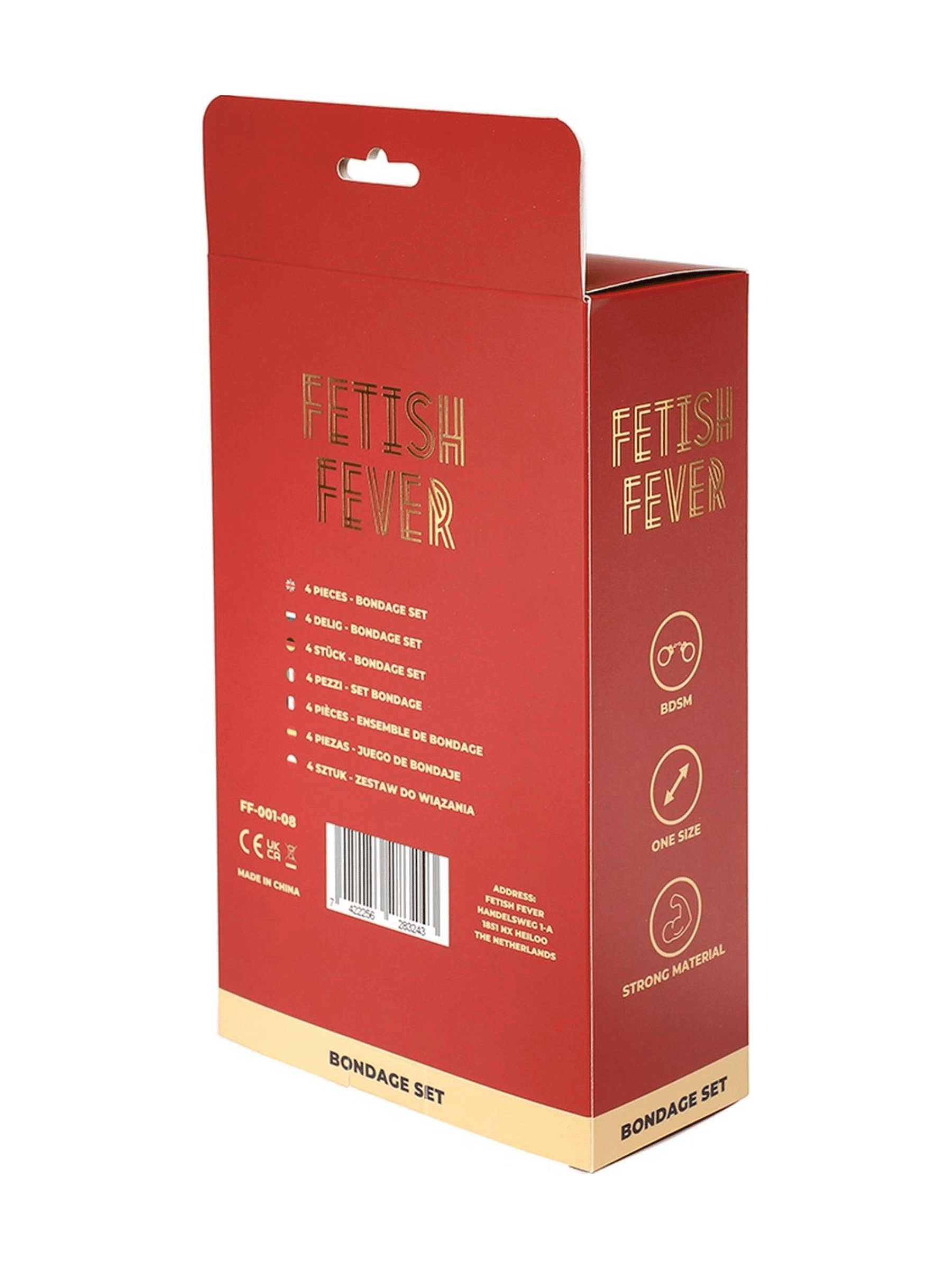 Fetish Fever Bondage Set to czteroczęściowy zestaw przeznaczony do prostych i zmysłowych zabaw bondage. Komplet zawiera podstawowe akcesoria, które pozwalają wprowadzić element ograniczenia oraz delikatnej stymulacji.