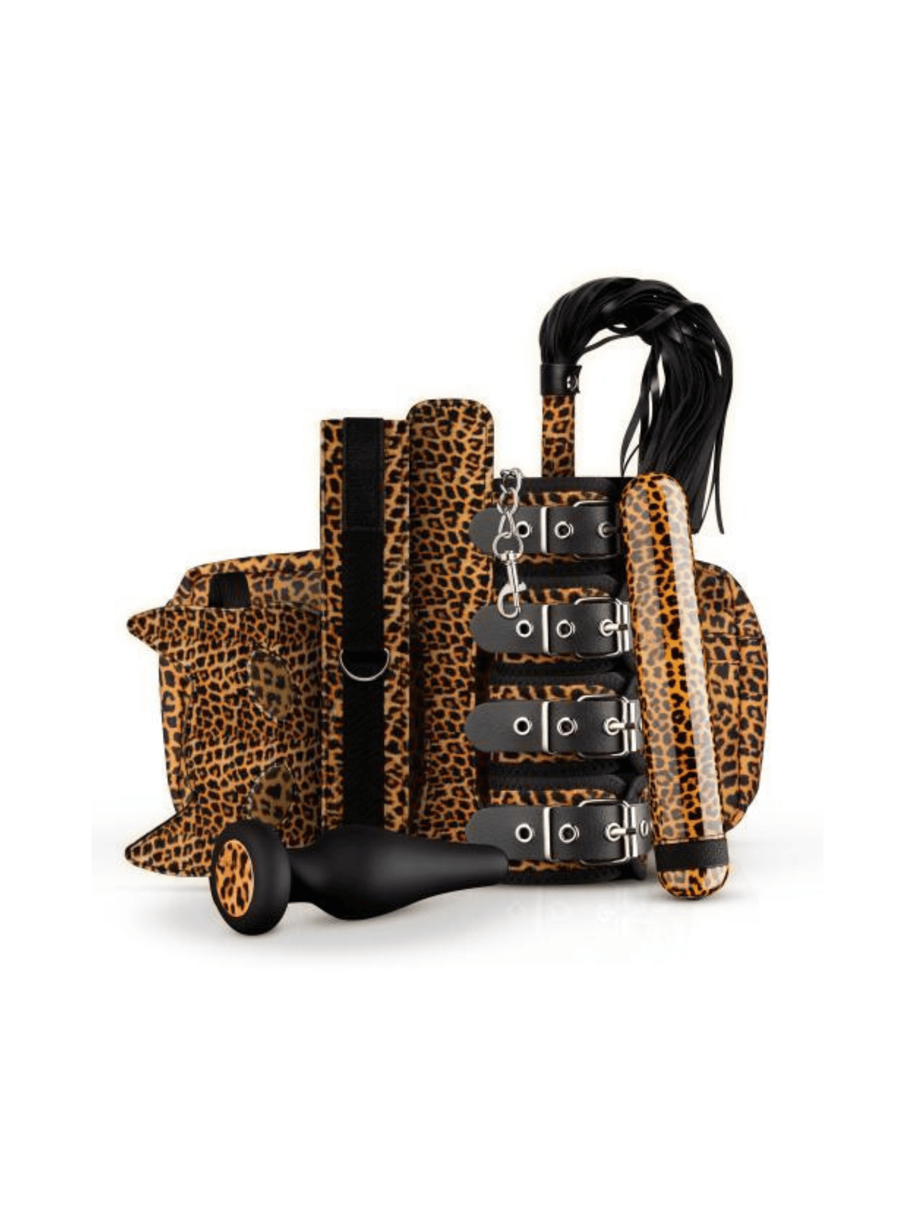 Zestaw akcesoriów erotycznych przeznaczony do wspólnych zabaw w sypialni. W komplecie znajduje się osiem elementów umożliwiających różne formy stymulacji i kontroli, a także praktyczny woreczek do przechowywania. Akcesoria mają miękką w dotyku i regulowaną konstrukcję, co sprawia, że zestaw jest odpowiedni również dla osób początkujących. Całość utrzymana jest we wzorze panterki.
